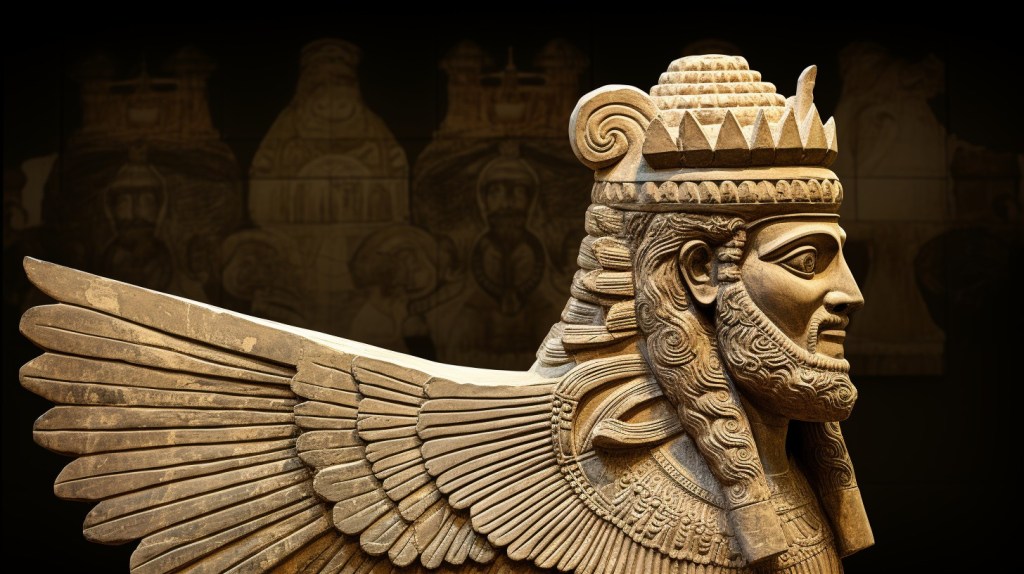 Hallan en Irak un inmenso toro con alas de hace más de 2.700 años en un estado increíble - Midjourney/Sarah Romero