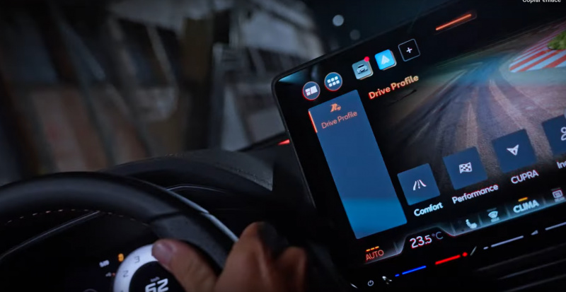 El sistema de modos de conducción CUPRA Drive Profile permite seleccionar entre diversos ajustes de respuesta del motor, suspensión y dirección, incluyendo el modo CUPRA, el más extremo de todos. En este modo, el coche desata todo su potencial, ofreciendo una respuesta explosiva y un sonido del escape que recuerda a los rallyes de antaño.