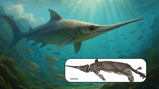 El Eurhinosaurus –‘lagarto de buena nariz’– recibe el nombre de su hocico, con un perfil que recuerda mucho al de los modernos peces espada. La utilidad de esa protuberancia no está nada clara, pues la mandíbula inferior es mucho más corta que la superior, lo que dificultaría la captura de presas. Quizá fuera un simple órgano de exhibición que, como tantas otras estructuras extrañas y aparentemente innecesarias de la fauna, tenía como único objetivo atraer la atención.