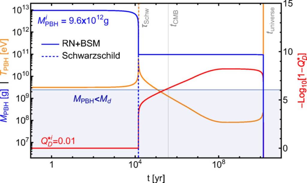 El modelo es innovador, pero no improvisado. Se apoya en formulaciones rigurosas de la relatividad general, la mecánica cuántica y la física de partículas más allá del modelo estándar. El artículo ofrece cálculos detallados de la evolución temporal del agujero negro con carga oscura, su temperatura y su masa, y cómo estas variables se relacionan con la probabilidad de explosión hoy en día.