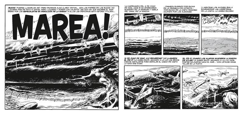El sagaz Harvey Kurtzman fue el primero en recuperar el género bélico en tiempos de la guerra de Corea (1950-53). El conocido creador de la revista MAD escribió toda una serie de historias de tipología castrense para la editorial E.C. Comics entre las que destaca Marea (marzo-abril, 1953), que narra la heroica acción de un comando de demolición de la marina americana que, situado a la vanguardia del desembarco en la playa de Omaha, debe abrir una brecha en las defensas nazis por la que pueda avanzar el resto de la tropa.