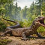 Este extraño reptil del Jurásico combina rasgos de serpiente y lagarto. Recreación artística. Foto: ChatGPT-4o/Christian Pérez